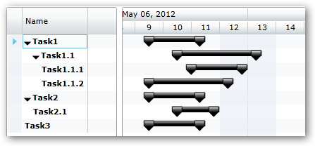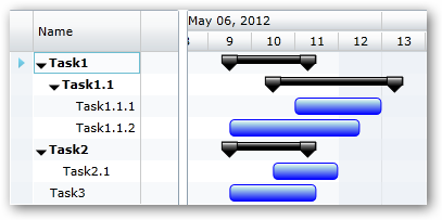 In such scenarios, the gantt will render all the rows as summaries as you will have to associate a HierarchicalItemTemplate to the Node type. The hierarchy would be rendered like this by default: