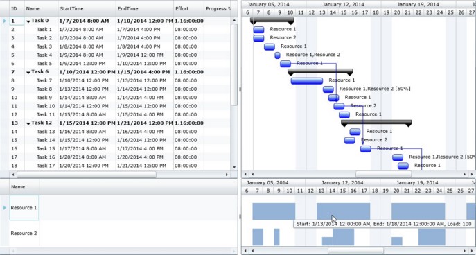 Then simply assign the ResourceLoadLists as the FlexyGantt's ItemsSoruce as above.